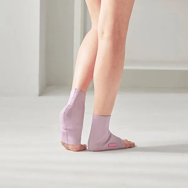 將足跟套套在雙腳上,調整至合適位置。